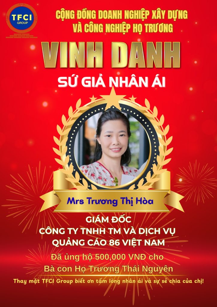 🌟 Mrs. Trương Thị Hòa – Giám đốc Công ty TNHH TM & Dịch vụ Quảng cáo 86 Việt Nam